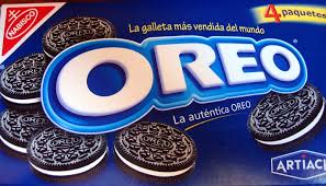 O biscoito Oreo consiste em duas bolachas redondas de chocolate e um recheio doce com sabor de Baunilha. No  Brasil nós temos a versão  Negresco da Nestlé.